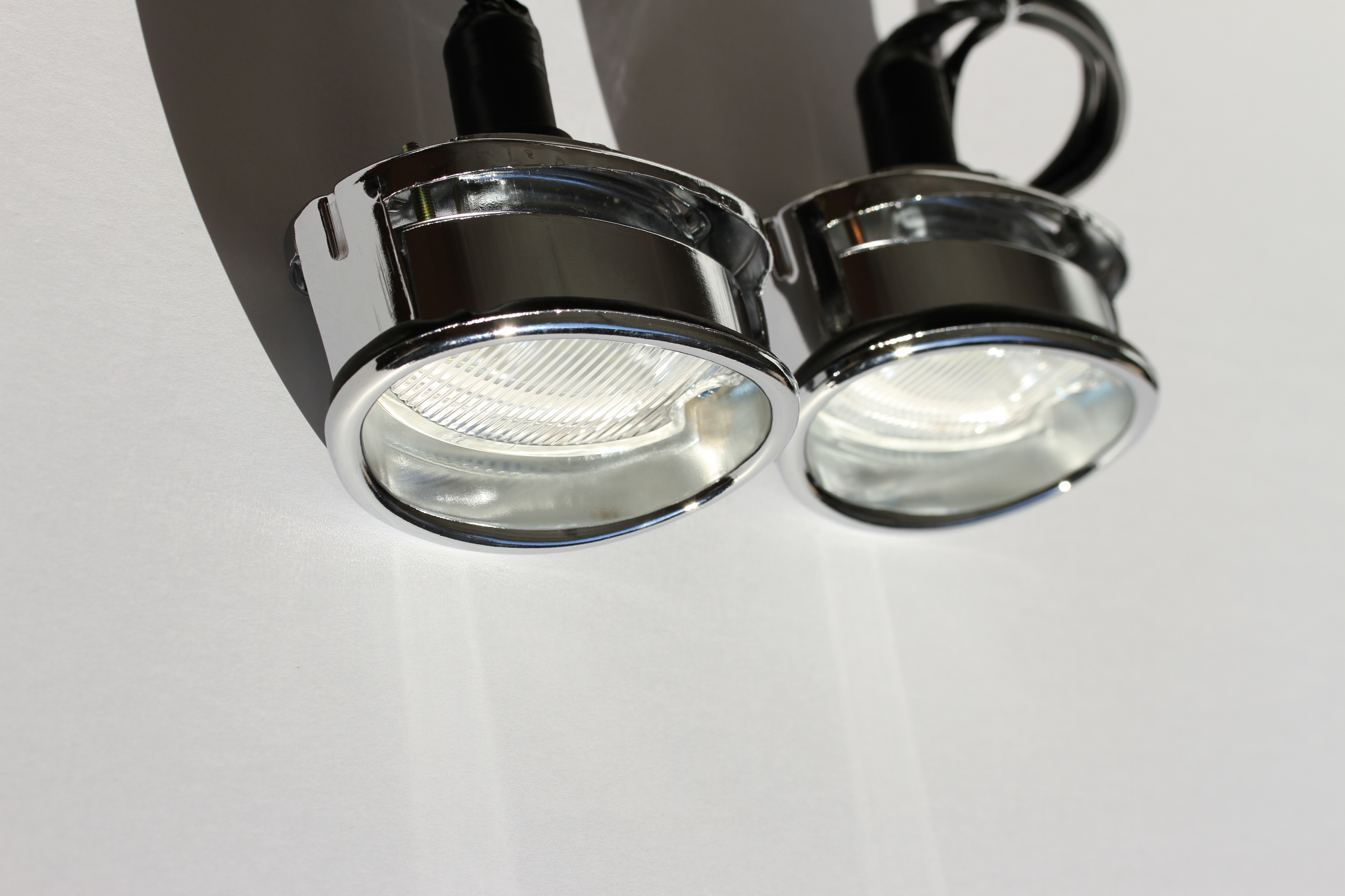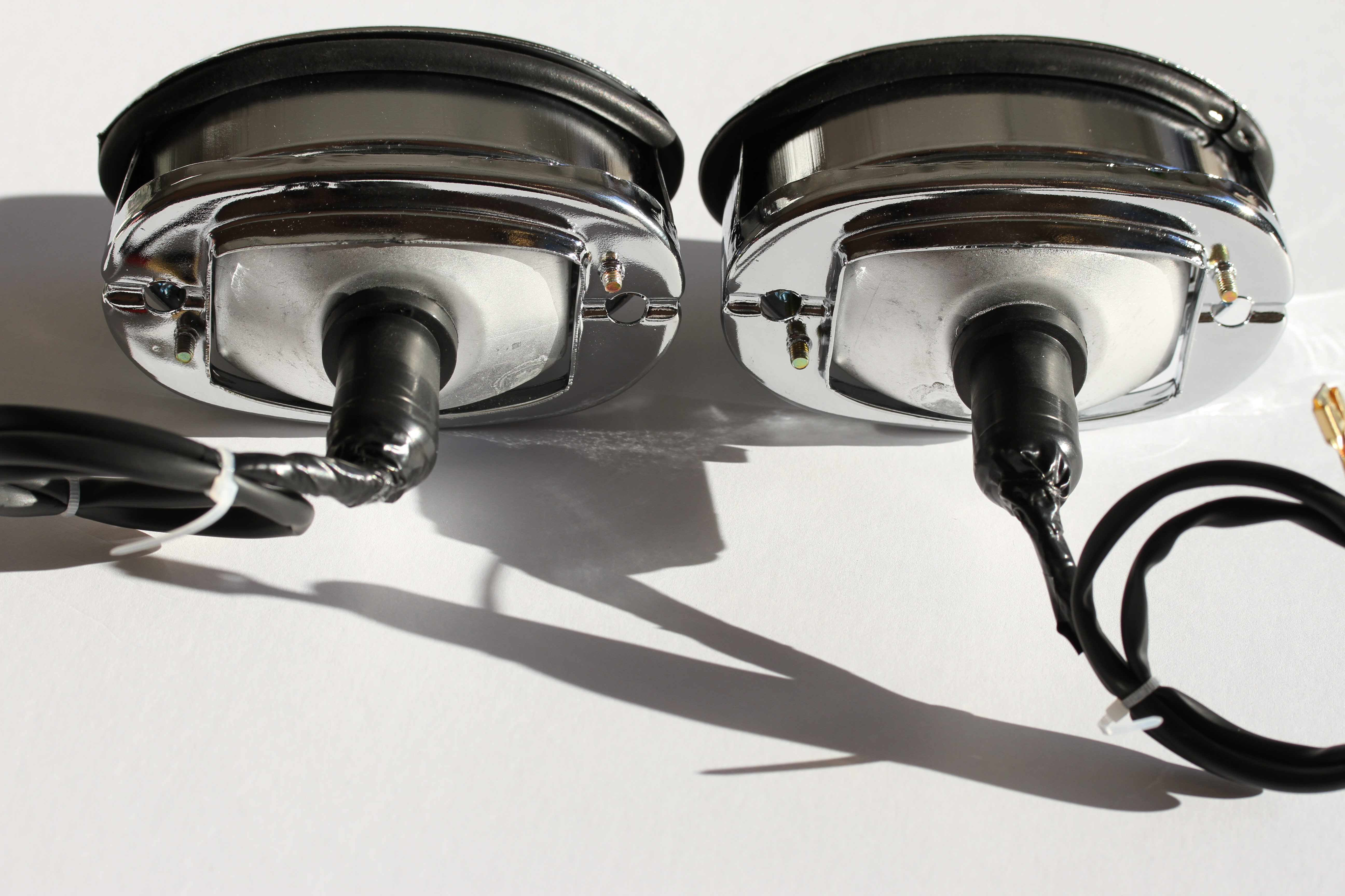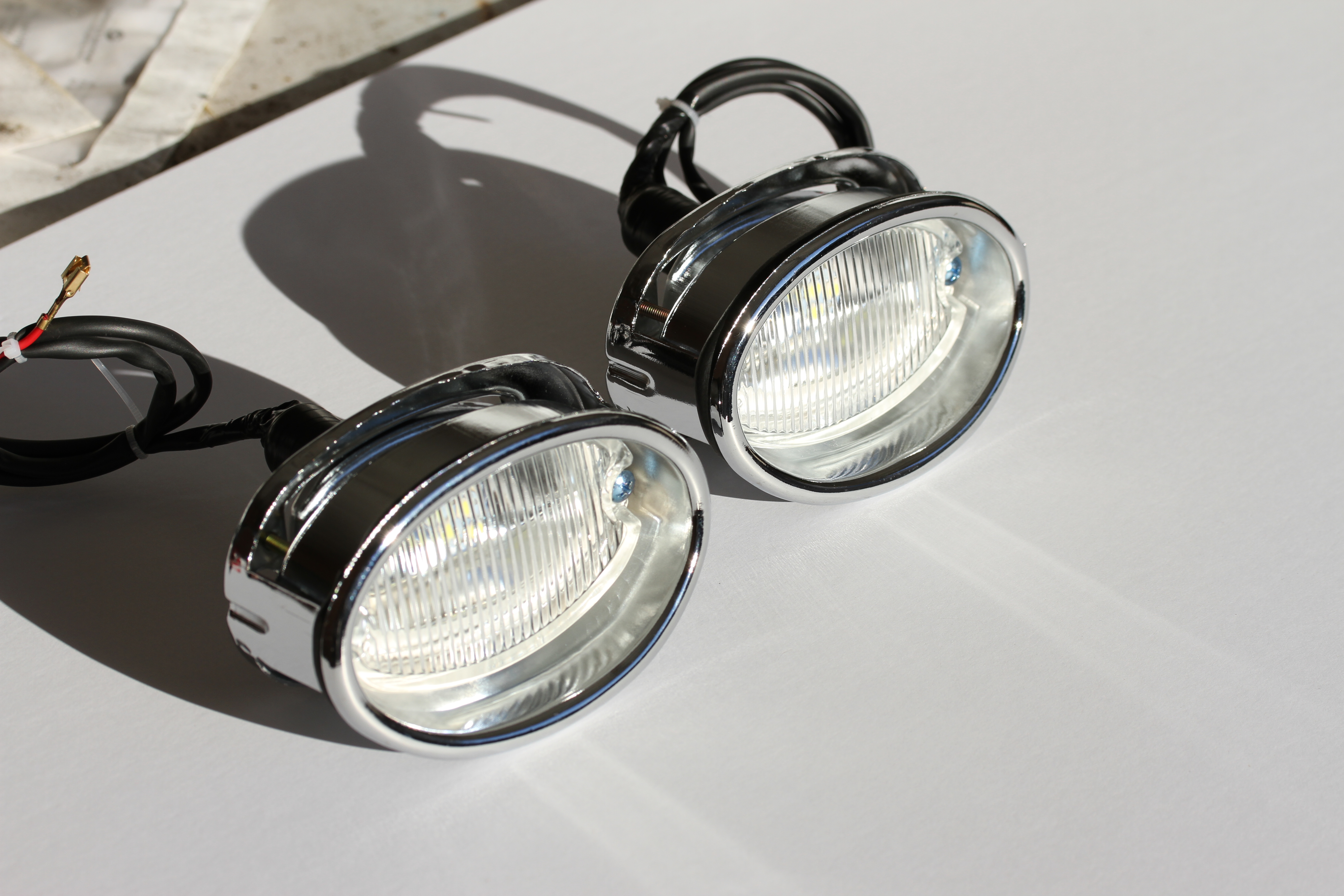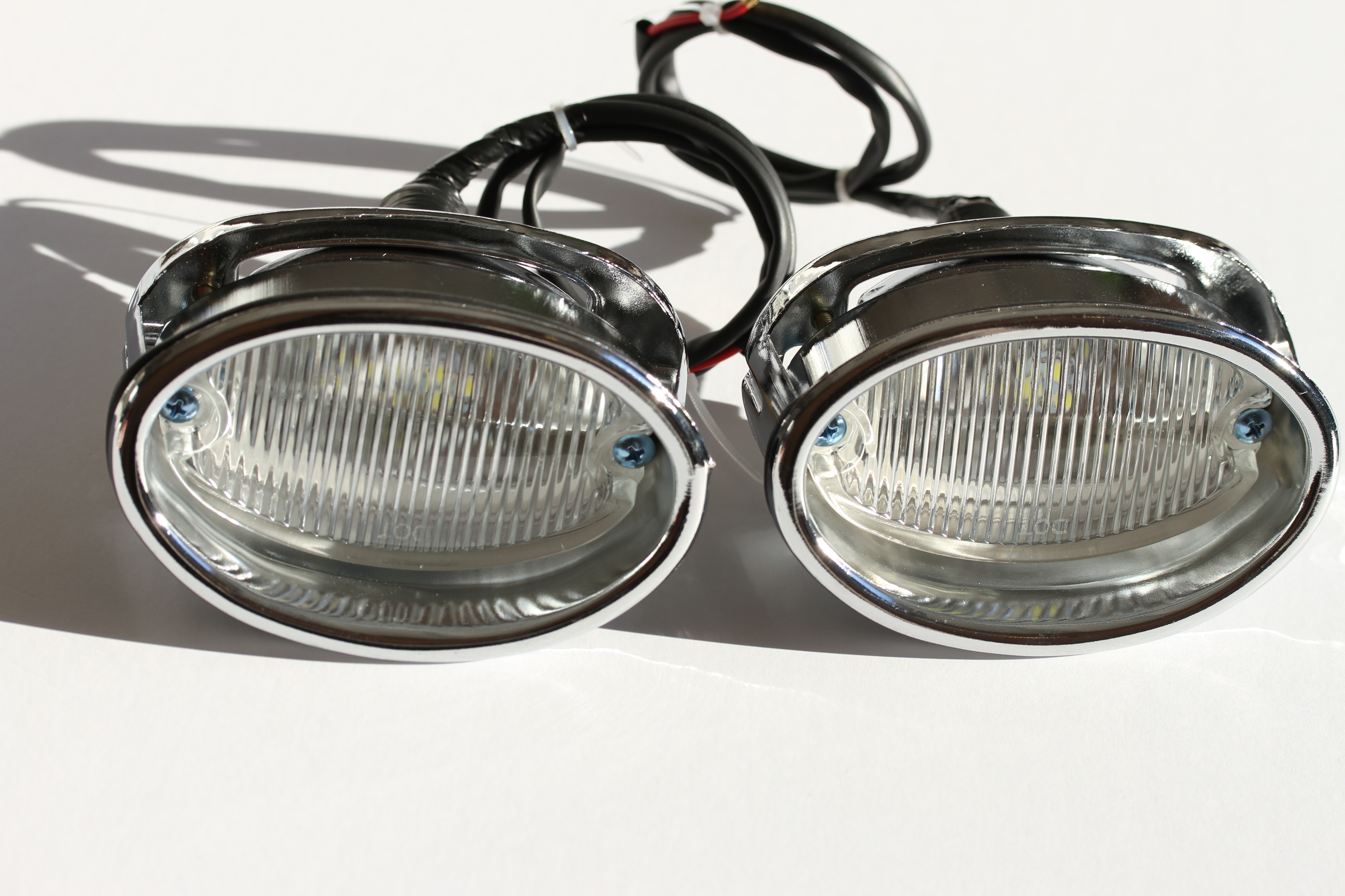Reproduction back up light assemblies; Features glass lens & chrome metal finish; Includes LED's that can be changed to an 1156 incandecent bulb; If using LED bulb it is recommended to use a flasher; Does not include neutral or back-up swiches or clips; Listing is for two assemblies