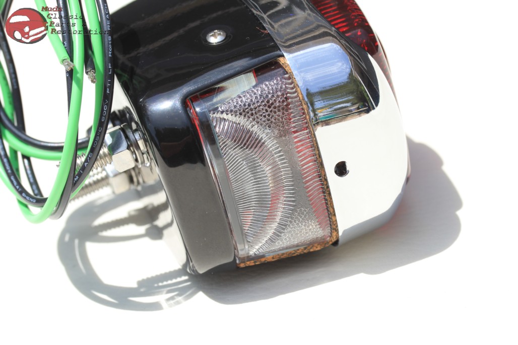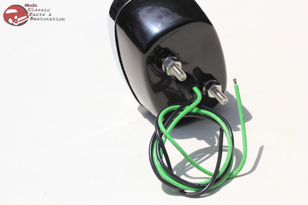 Description Additional Information Description 40-53 Chevy Truck Tail Lights - Pair (New) Stainless steel rim w/red glass lens; Black powder coated housing; 6 volt; Left hand assembly has cutout to light up license plate View AllClose Additional Information I.: Driver Passenger Side Pair Bracket Mount Apache View AllClose