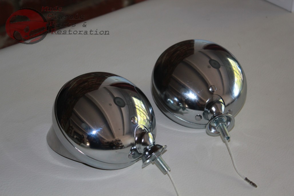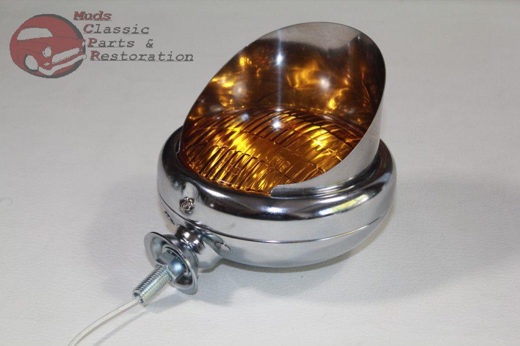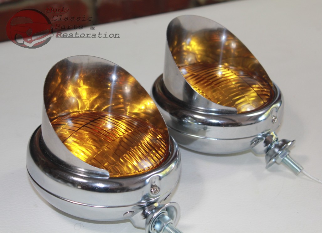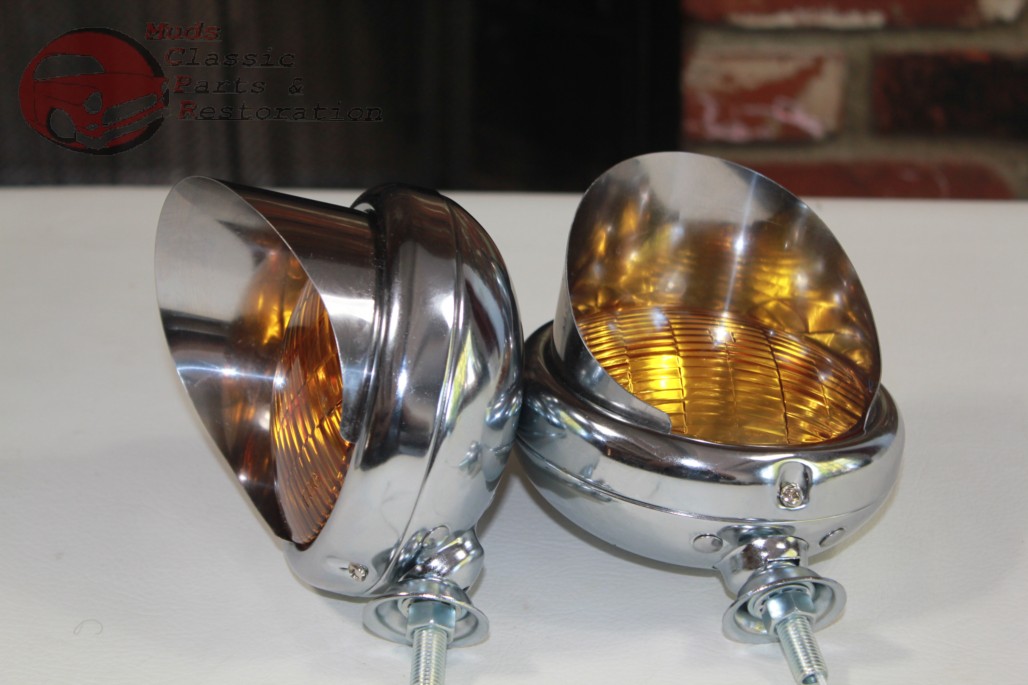 Vintage Style Custom Mounted Amber 5" 6 Volt Fog Lights w/Visors - Pair (New)
