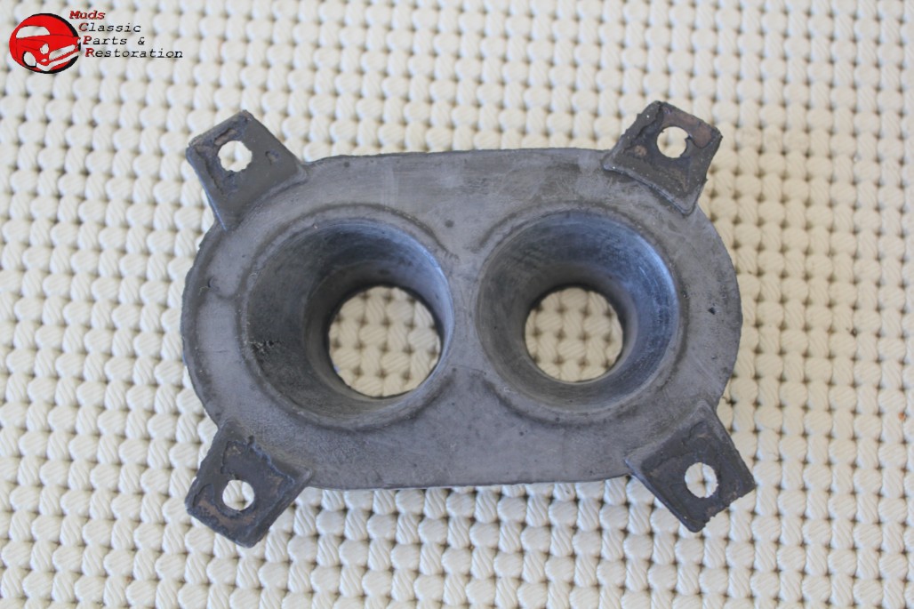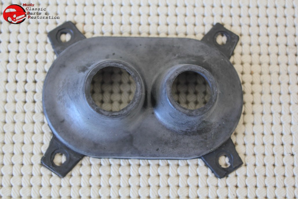 Dimensions: 3 5/8" L x 2 1/4" W, Mounting holes top to bottom 3" apart, Mounting holes left to right 2 1/4" apart, Middle holes DIA 3 1/4"; Insulates the AC hoses form the condensor to engine compartment; Made of rubber with a steel spine