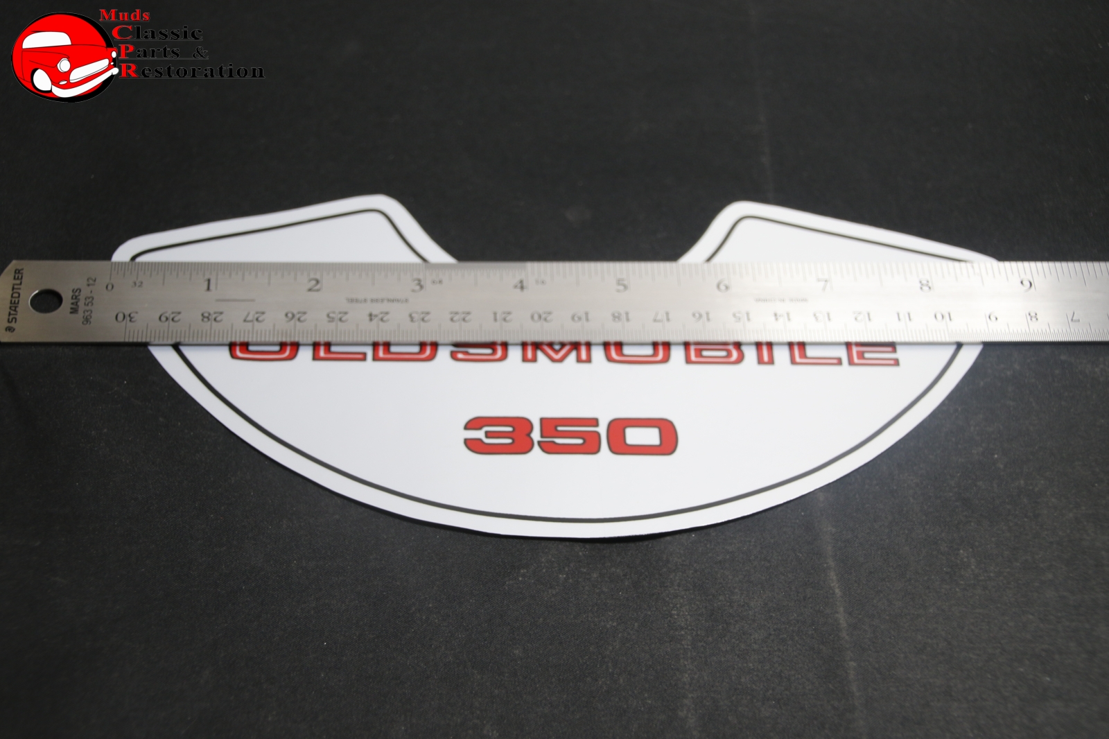 Description Additional Information Description 1973-74 Oldsmobile 350 Air Cleaner Decal Small - 8 3/4" x 4 1/8" (New) View AllClose Additional Information Manufacture Part Number: DO0153 Brand: Classic GM View AllClose