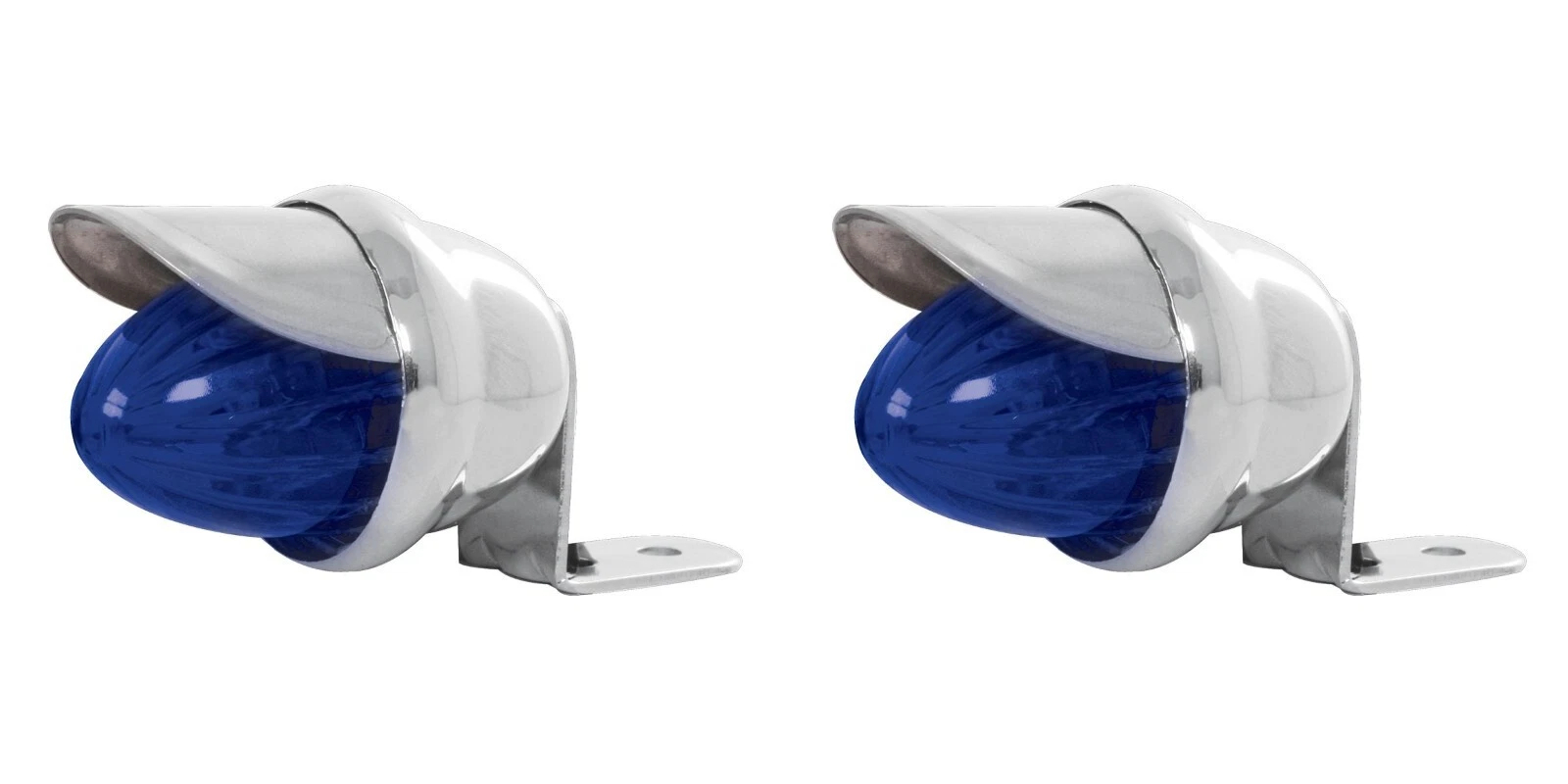 Mini Bullet Blue Marker Lights w/Chrome Housing & Stainless Steel Visor - 2 Set (New)