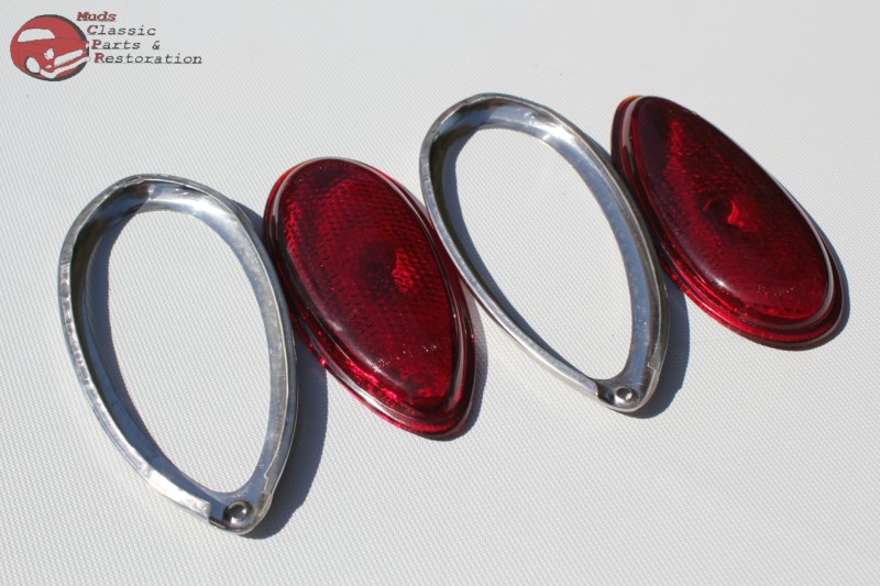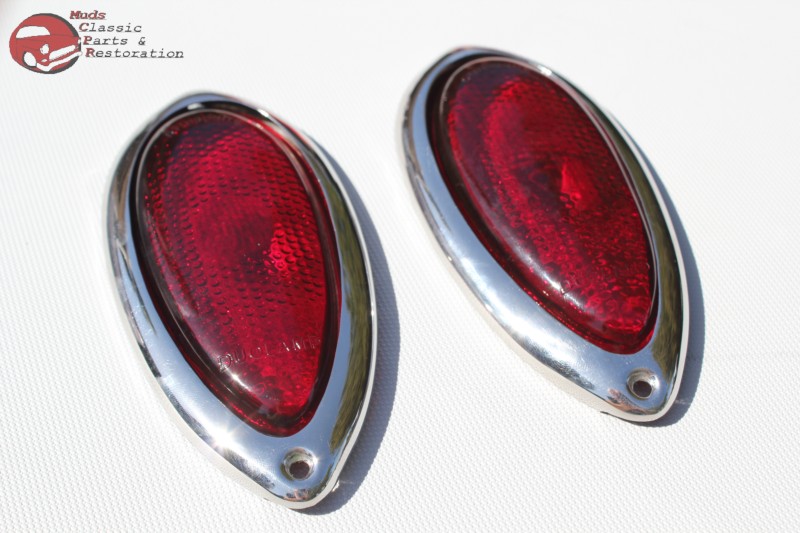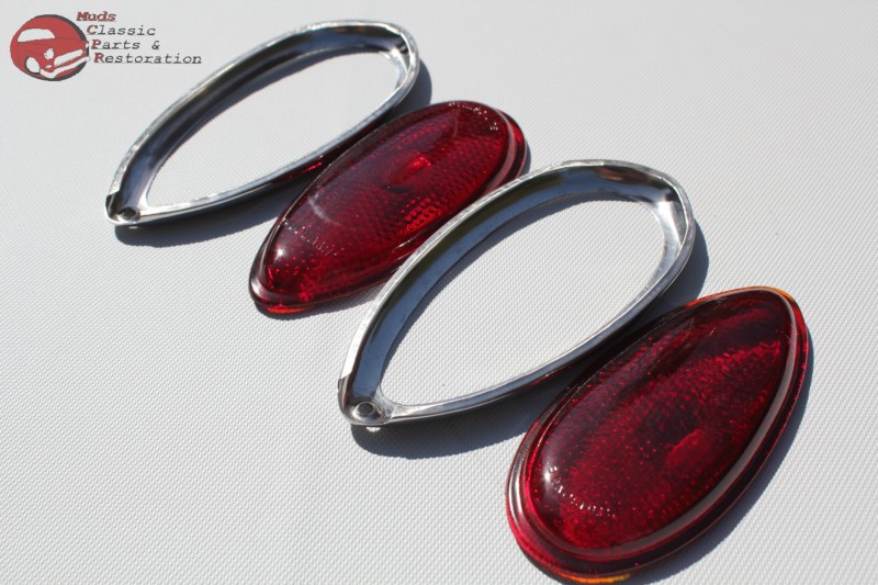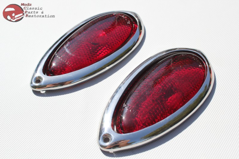 Lenses are made of red glass; Popular on many custom car & motorcyle builds; Purchase includes two lenses and bezels; Dimensions 5 3/8" H x 2 5/8" W