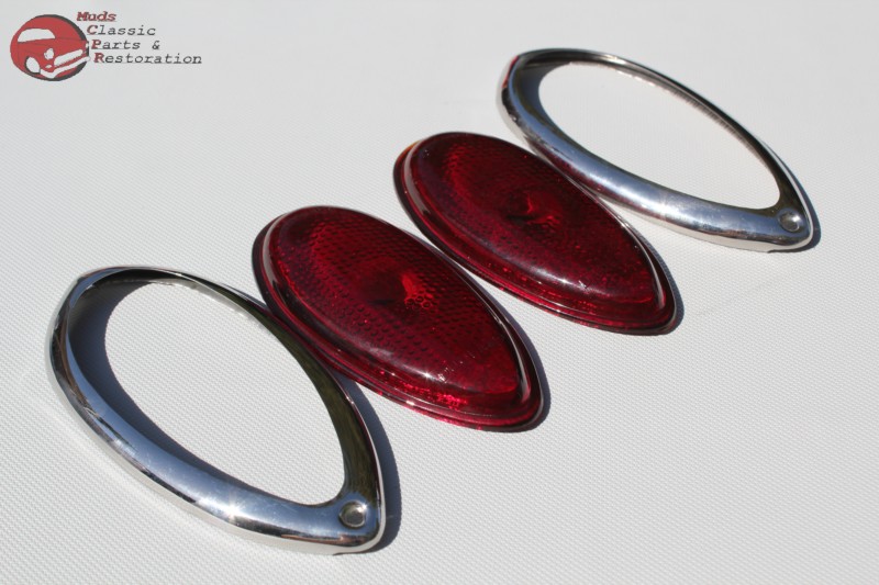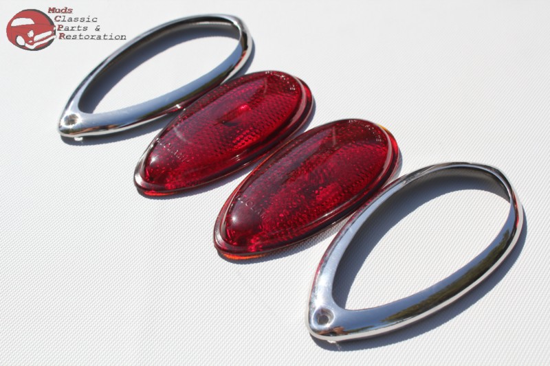38-39 Ford Hot Rod Tail Light Lenses & Stainless Steel Bezels - 4 Piece Set