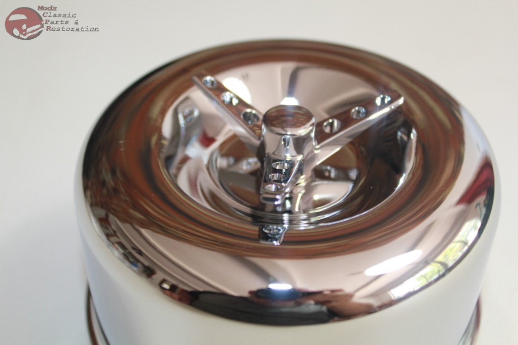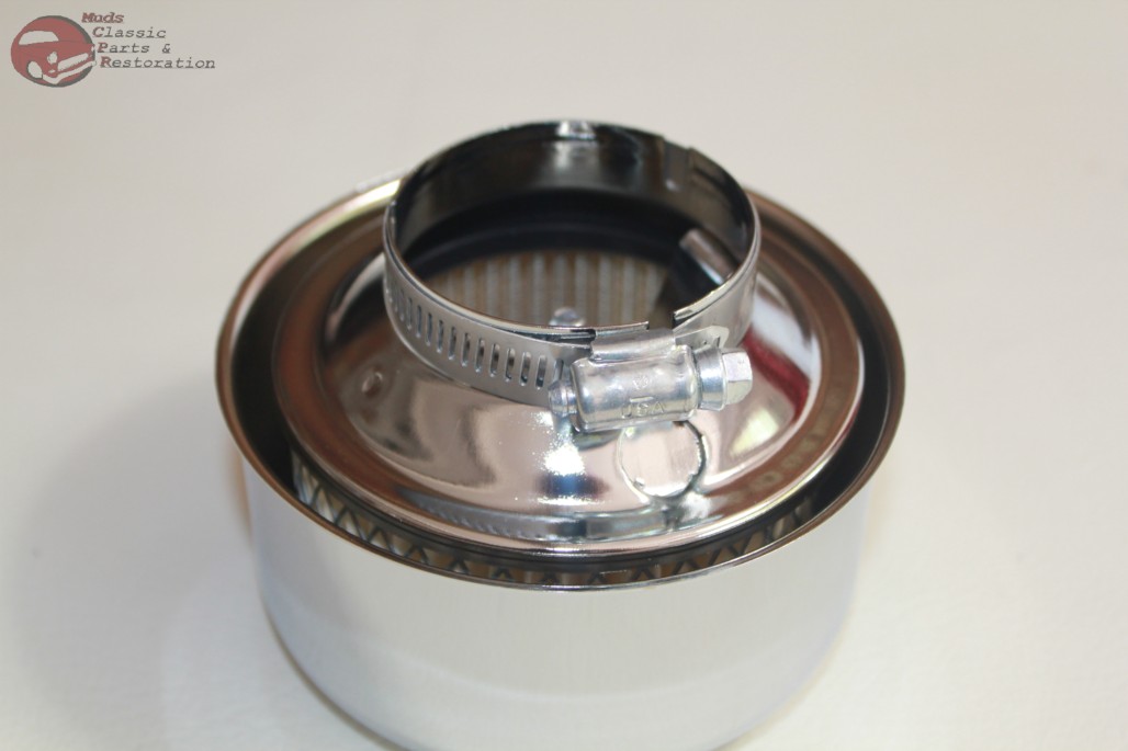 2 5/16" Opening throat diameter; Chrome plated steel; Paper element & stainless steel clamp included; Please measure the throat of your carburetor before purchase; Listing is for three